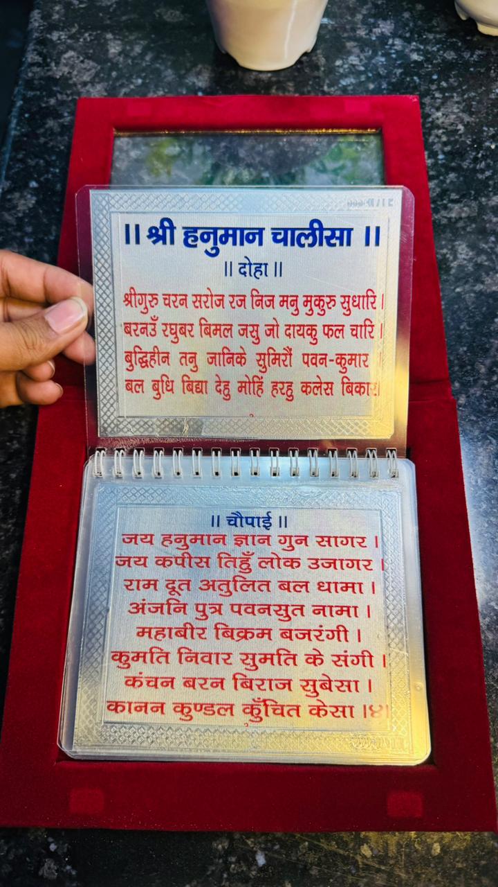 You receive Hanuman Chalisa, Aarti, Bajrang Baan, Ashtak, Ram Stuti & Ram Avtar, all in a compact, durable, and premium silver booklet.